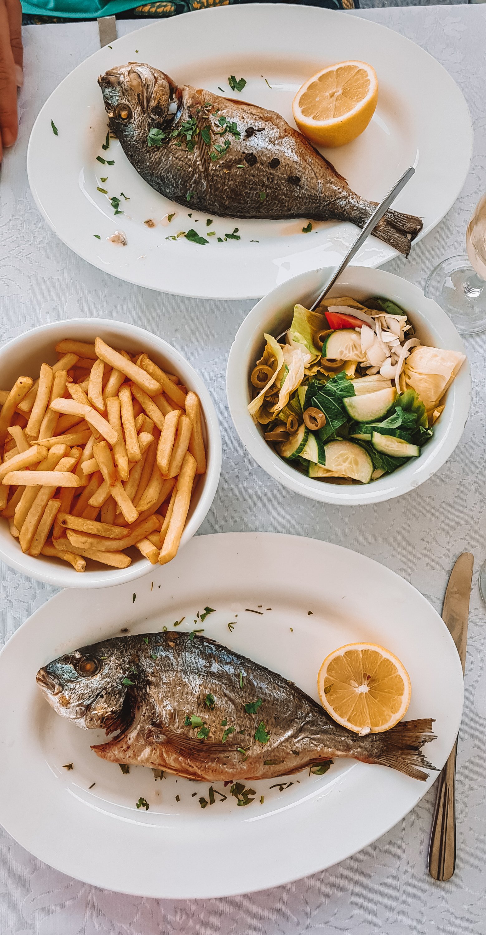 Here you will find the colorful fishing boats and enjoy one of the most delicious meals on the island.